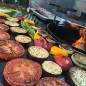 Hortalizas de temporada al carbón: sabor intenso, texturas crujientes y aliños frescos. Opciones vegetarianas, sin renunciar a la brasa.