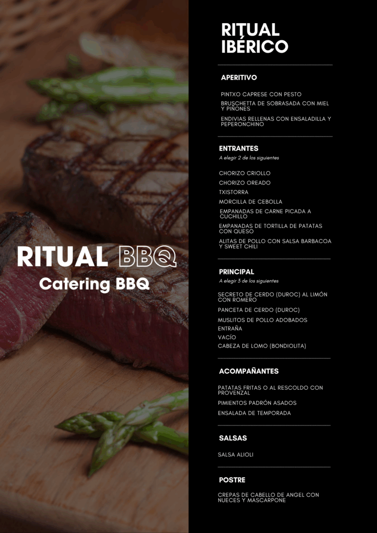 El RITUAL IBÉRICO es la típica barbacoa española, una celebración en torno al fuego, en el cual los productos ibéricos son los protagonistas. Combinamos la técnica ancestral con la presentación moderna.