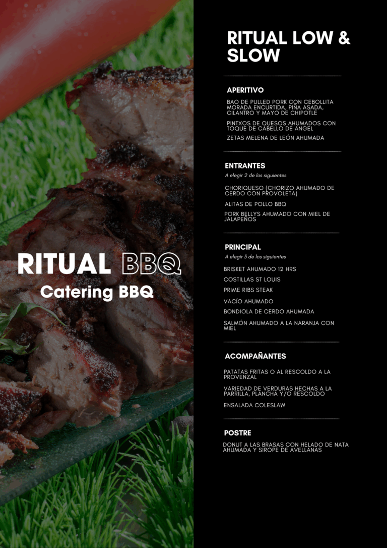 El RITUAL LOW & SLOW es pura dedicación y paciencia. Horas de fuego suave y humo envolvente transforman cada corte en una obra de arte tierna y llena de sabor, donde el tiempo se convierte en el principal ingrediente.