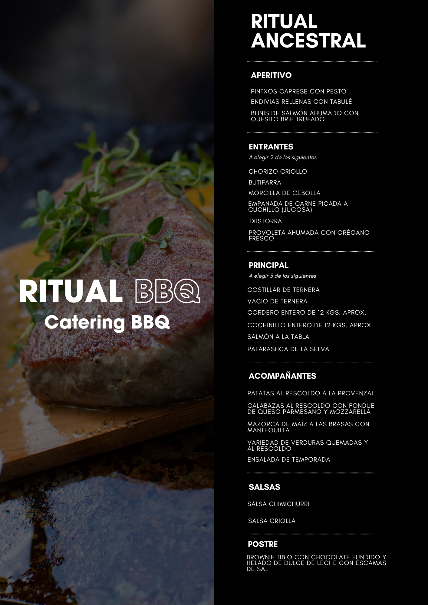 El RITUAL ANCESTRAL DEL ASADO es el origen del fuego compartido. Una conexión primitiva entre tierra y carne , donde la paciencia, el respeto por el producto y la esencia del fuego puro dan vida a una experiencia auténtica y sagrada.
