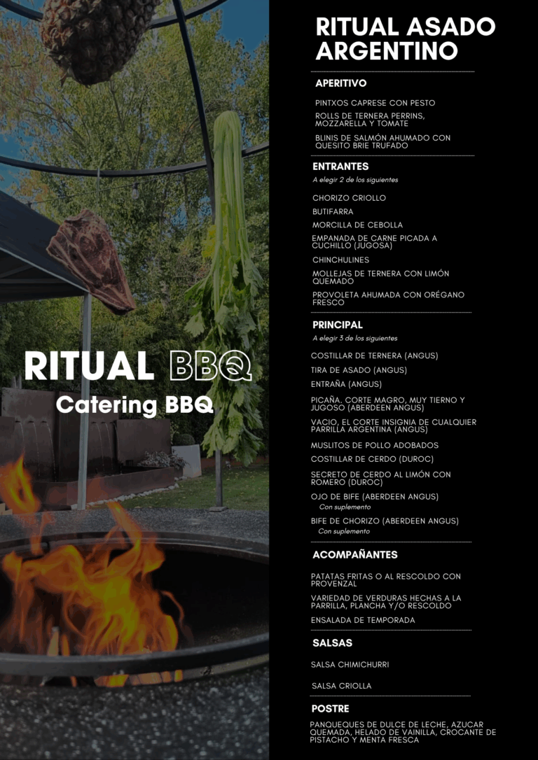 El RITUAL ASADO ARGENTINO es una ceremonia de fuego, tiempo y amistad. No es solo cocinar carne, sino compartir, esperar, y celebrar la vida alrededor de las brasas, donde cada corte cuenta una historia y el fuego une a todos.